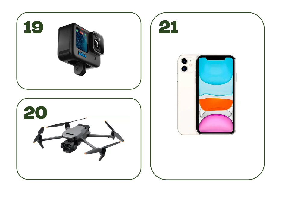 19. Câmera de foto e vídeo (de preferência à prova d'água);